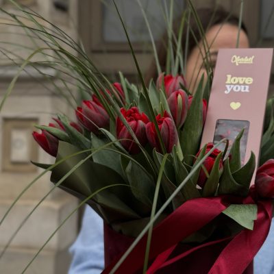 Ziedi samta kastē Classic Red + šokolāde