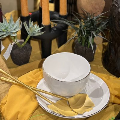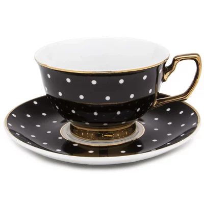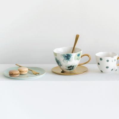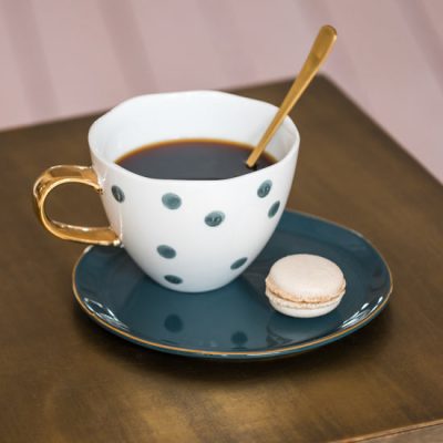 CRISTINA RE Krūzīte ar šķīvīti – GOLD/IVORY POLKA