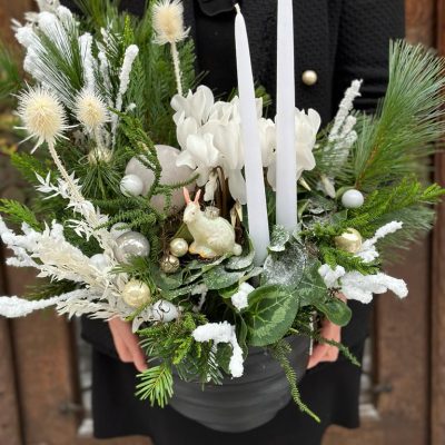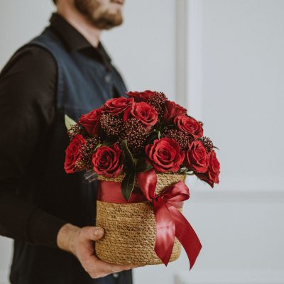 Ziedu pušķis Nr.96-25 ziedi kastē+eskluzīva svece