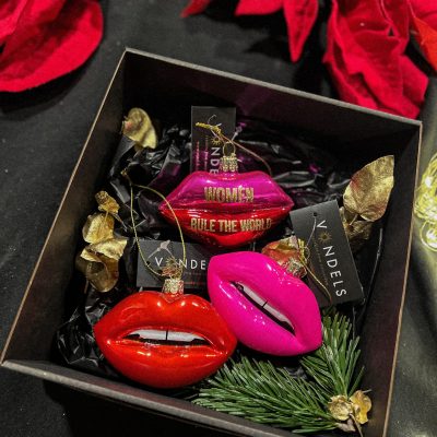 Eglīšu rotājums VONDELS glass red opal sensual lips H7.5cm