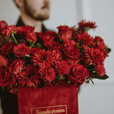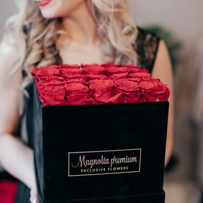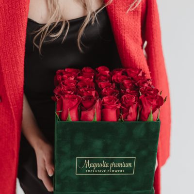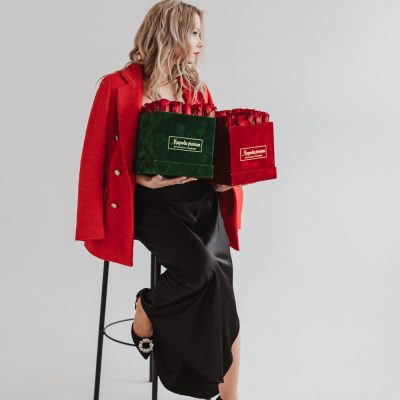 Ekskluzīva ziedu kaste veidota no šīs sezonas populārākās krāsu paletes –tulpēm, rozēm, maigām krūmu rozēm, gerberam, papildinot dažādiem eksotiskajiem ziediem.