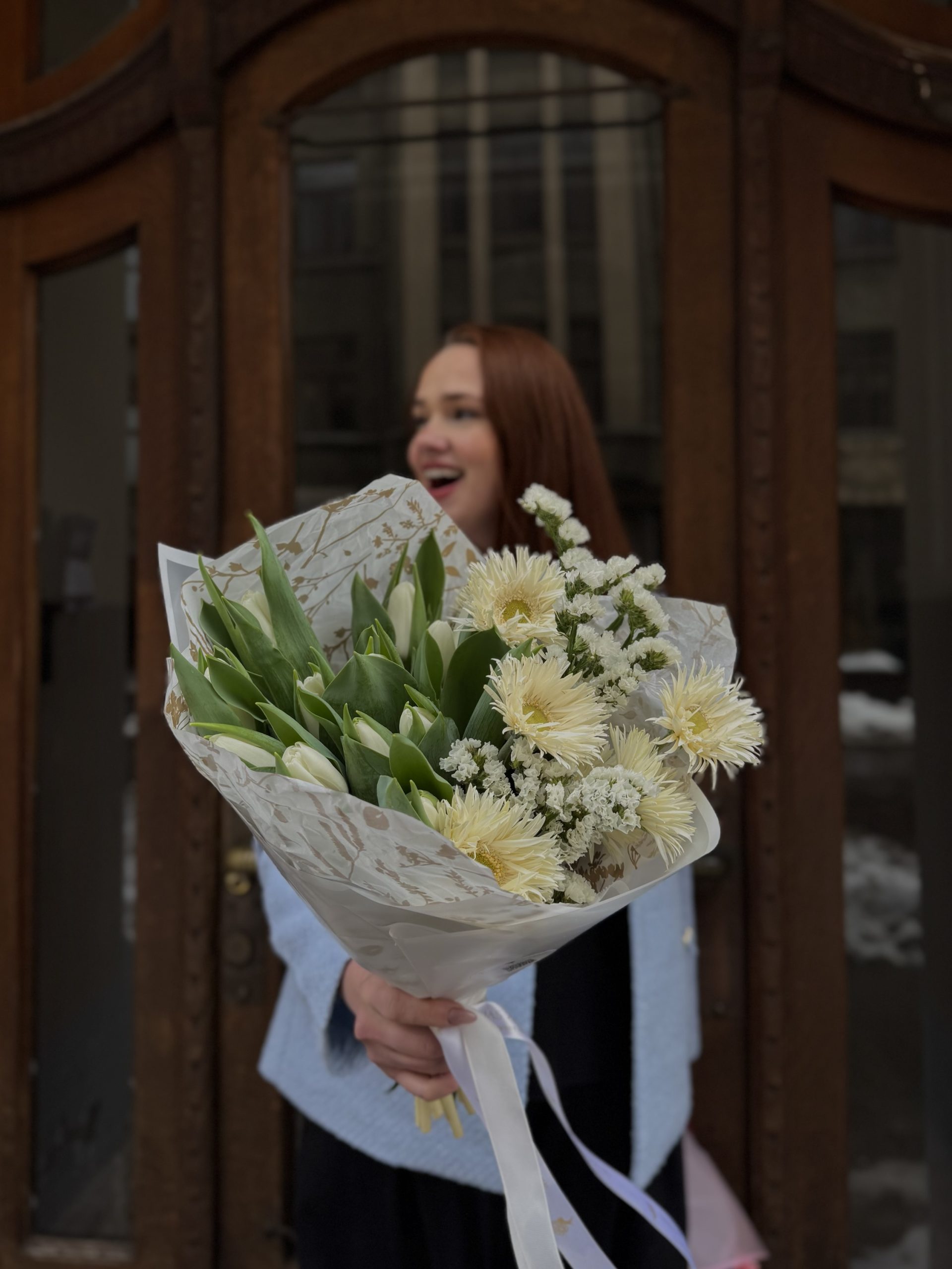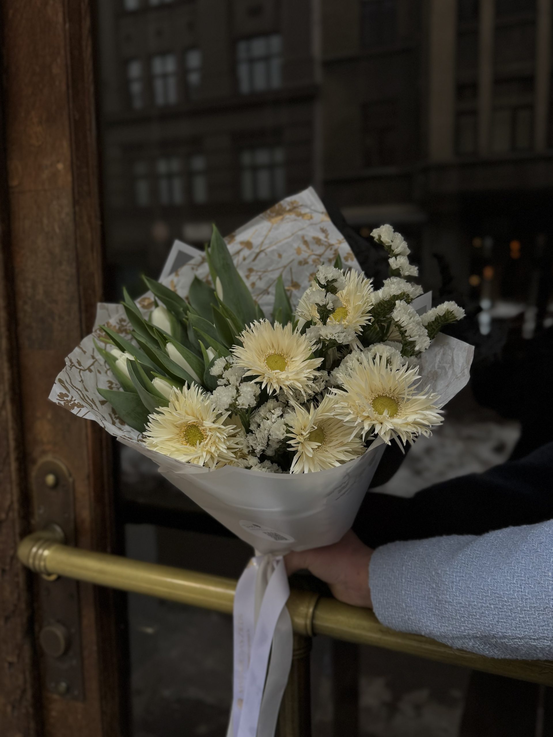 Šī nav interneta bilde, tas ir īsts, mūsu floristu, taisīts ziedu pušķis.